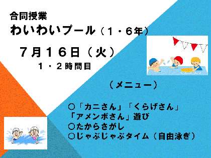 「わいわいプール」として、ともに水泳(水遊び)学習をします。