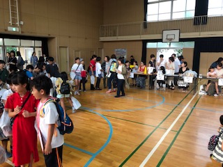 まだ暗闇には程遠い午後7時!体育館は熱気で包まれています。受付では人の波!高学年の子どもたちおよそ110名が参加するイベントがまもなく始まります!