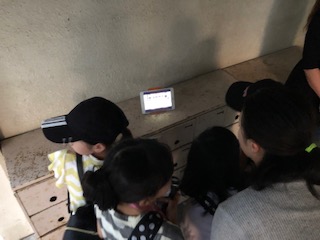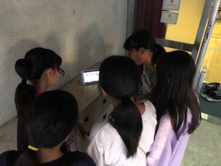 自分の番号が呼ばれると体育館入口に集まります!そこで、あるビデオを視聴する子どもたち!キャー!嫌や!ちゃんと見ないと!もう行こう!とテンション上げてから出発します!どんな旅になるのやら!