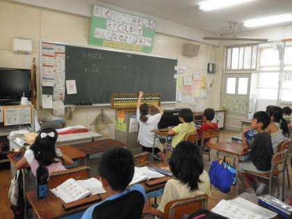4年生は、そろばんの学習をおこなっていました。そろばんは、日本の文化です。がんばって学習していました。