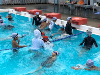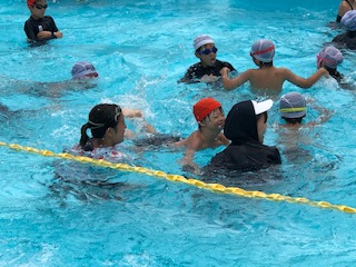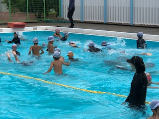 気温がぐんぐん上がり、プールの水温も上昇しました!蝉の声が絶好調の中、子どもたちも元気に水泳学習で汗を流しています!泳法によってコースを分けたあとは、自分なりの泳ぎを楽しんでいます!