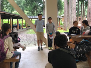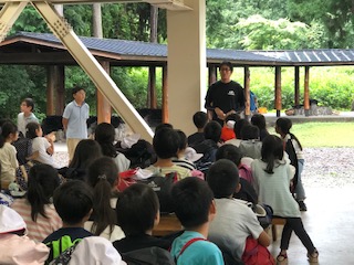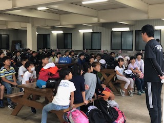 ホテルの方と対面!雨でもみんなの力をひとつに頑張りましょうね!とエールをいただきました。また、新しい仲間として写真屋さんの紹介もありました!児童代表の子どもたちもしっかりと大きな声で、自分らしく進行することができました!見事でした!
