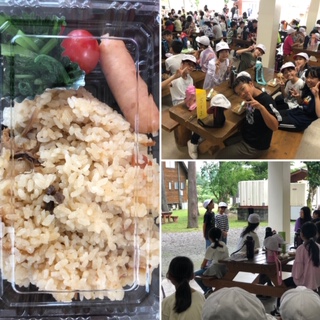 お昼ご飯は炊き込みご飯!おかずが少ない!っと嘆いている子どももいましたが、みんなモリモリ食べてます!