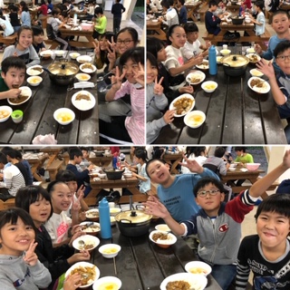 いただきます!ようやく晩御飯!みんな美味しそう!嬉しそう!