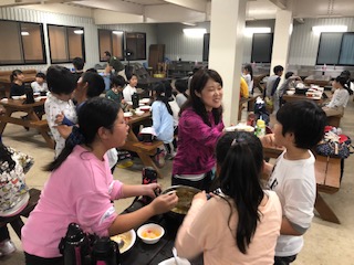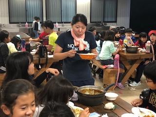ごちそうさまでした!のあいさつ直前、教職員の二人を発見!子どものカレーに群がる二人!とってもいい笑顔で子どもたちと談笑していました!