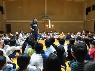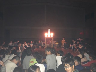 キャンドルファイヤーのクライマックスは、みんなで「ハレルーヤ」1日を振り返りながら、明日を想像しながら、今の自分たちを省みながら、目の前の炎を見つめて、一人の世界に入ります!