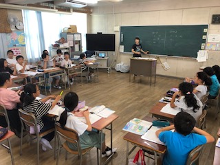 今回の授業は 「あたり」か「はずれ」で1から30までの数字を仲間わけから始まりました。奇数と偶数で!15までと16以上で!などなど、クイズ形式で子どもたちの既成学習や知的好奇心を揺さぶります。