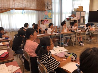 コの字にした机配置ではお互いの顔を見ることができ、友達の考えをしっかりと受け止めることができます。相手の考えと自分の考えを比べたり、相手の考えから自分の考えを見つけたり、そこが学び合いには大切なこと! 相手をどれだけ尊重できるのか!そのベースが子ども同士をつなぎます。