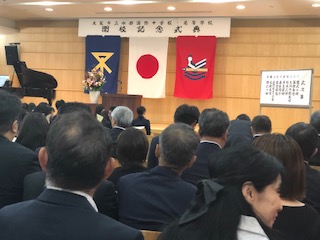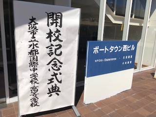 炎天下の中、午後2時から南港ポートタウン西駅前のホールで、水都国際中学高等学校の開校記念式典が盛大に開かれました。