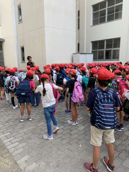 子どもたちが元気よく「大阪市立科学館」に向けて出発しました!