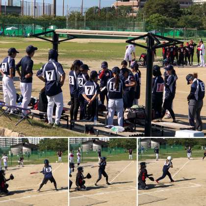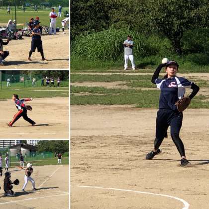 気温がぐんぐん上昇する中、午前8時15分から女子ソフトボールチームの試合が始まりました。桜小学校の教職員精鋭5名が参戦!それぞれに熱い戦いに挑みました。