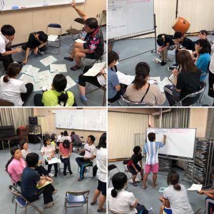 それぞれのテーマについてグループに分かれて、ホワイトボードミーティングをしました。ファシリテーターが各グループをリードします。ファシリテーターは初めてする人が率先して務めます。ここでまずは「自分で考え、自分から動く」大人が登場しました。