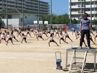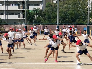 ソーラン節に挑む子どもたち!運動場いっぱいに子どもたちの気合のこもった声が響きます!