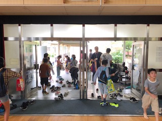 今外は晴れ上がっています。心地よい秋を感じる空模様です。これやったら水鉄砲大会できたのに!と思われた方も多かったのではないでしょうか?しかし、気温は低いままでしたので、結果的にはやらなくて正解だったと予想しています。子どもの中にはいてもたってもいられずに、水鉄砲を作動させていた子どももいました。濡れて帰っている子どもいますので、ご家庭でもケアをお願いします。