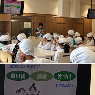 手洗い!をしっかりして準備万端!100名が一度にできるこの施設はすごいです!大阪ガスの最新キッチンでエコクッキングにチャレンジします!