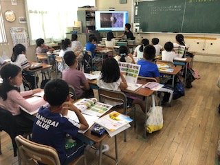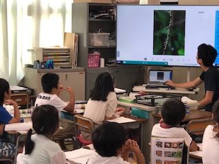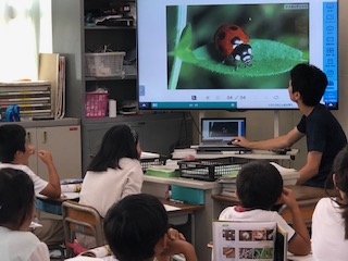 画像があまりにリアルで目を覆ってしまう子どももいました。それでも電子黒板に映し出される画像はわかりやすく、細かいところまでよく見えました!これもICTの効果ですね。こん虫の育ち方について映像から学ぶ子どもたちです!