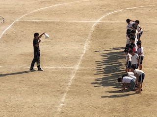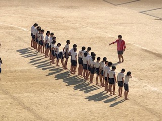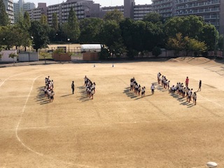 運動場に広がる子どもたち!さまざまな隊形移動から、様々な表現活動をする子どもたち!実際の表現は当日のお楽しみにです!太陽に照らされ、土にまみれ、子どもたちは小学校生活最後の運動会に向けて、自分の力を高めています!