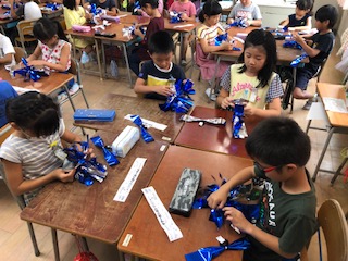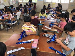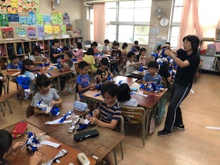 教室では、ポンポン作りをしています!子どもたちが手に持つポンポン!色鮮やかなポンポンでより一層、演技にも華が咲きます!ひとつひとつ丁寧に作業する子どもたちでした!