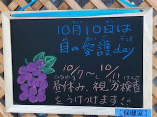 目の愛護デーです!スマホやゲームなど、ふだん知らず知らずのうちに目を酷使していませんか?この機会に少し休ませてあげてくださいね!