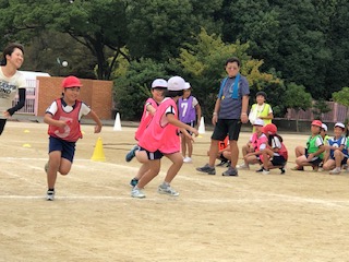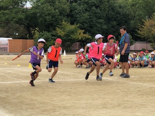 爽やかな風の中、子どもたちが颯爽とトラックを走ります!リレーは盛り上がる競技のひとつ!子どもたちはイキイキと、楽しそうに運動場を駆け巡ります!