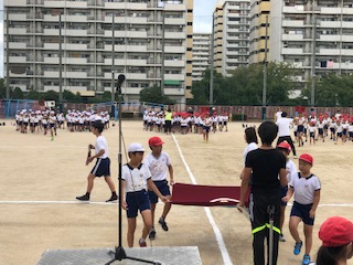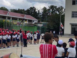 子どもたちはいよいよ運動会の入場から開会式、ラジオ体操、応援合戦の学習に入りました。