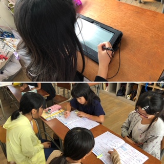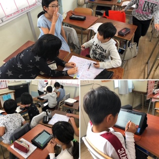 クラスを覗くと、バラバラな感じ!子どもたちは一人一人違う課題にチャレンジしています。ドリルをする子やタブレットに向かう子、友だちと学び合ってる子、1人で集中している子などなど、いい意味でバラバラな学び、個の学びが行われていました。