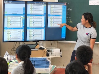 自分の考えを持った子どもたちは、グループで伝え合います!そして、グループの考えを電子黒板上に映し出し共有します!
