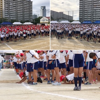 子どもたちの明暗が分かれました。万歳と拍手が交差する中、負けてしまった赤組の子どもたちの中に、うずくまっている子どもがいます?何をしているのかよく見ると、グランドの土を集めていました。後から聞くと、負けて土を持って帰る甲子園球児を演じていたようです。