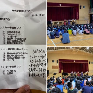 昨年まで本校でともに学ばせていただいた「萩原先生!」が桜に帰ってきました!先生が趣味とされている音楽チームが、子どもたちのために、音楽を伝えに来てくれました!
