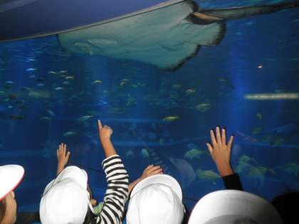 1・2年生は、秋の遠足で海遊館へいきました。様々な海の生き物に出会って、「ワァー大きいな!」や「かわいい!!」などと大興奮でした。また、生き物にさわることができる体験コーナーが充実していたことも大喜びでした。お弁当を食べて、帰りに公園で遊んでとても楽しい秋の遠足でした。