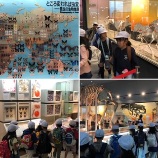 食事の後は、博物館への探検です!入り口では早速恐竜たちがお出迎えです!入るとすぐに、マンモスさまの登場!恐竜だけでなく、様々な生き物たちとの出会いがありました。もちろん動きはしませんが、子どもたちはまるで生きてるかのような生き物の姿に驚きと感動を覚えていました!恐竜好き、虫好きの子どもたちにはたまらない時間であったと思います!