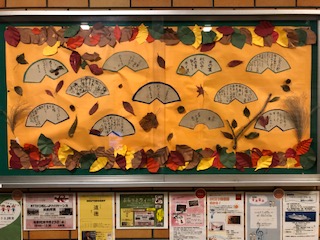 すっかり秋らしくなってきました。学校の玄関にも「秋到来!」です!葉っぱには俳句あり、短歌あり、詩ありなど、秋を連想する言葉の数々が散りばめられています!