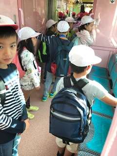 電車の中は0の声!みんながんばって守ろうとしています!ついしゃべってしまう子どももいますが、お互いに声を掛け合いやり遂げようとしています!