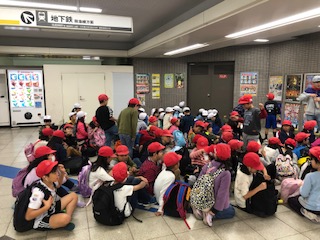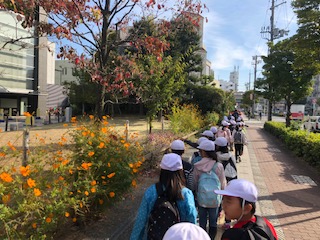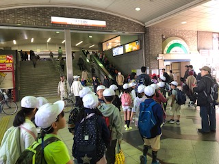 地下鉄から南海電車へ乗り継ぎます!途中地上へ上がり、外の空気を吸いながら、心地良い風にふかれて、歩道を歩きます!