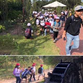 バラ園にはバラはもちろん、そのほかの花たちや昔ながらの建物などが点在しています。子どもたちは池の鯉に夢中になったり、バラやパンジーの花に見とれたり、自然を楽しんでいました!