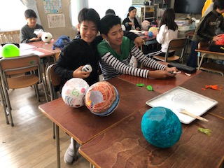 ランプシェイドが進化してきています!ボンドの水溶液を使って、形に命を吹き込みます!見事に個性あふれる作品に!どんなできあがりになるのか楽しみです!