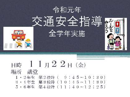 来る22日(金)は全学年対象の交通安全指導が行われます。