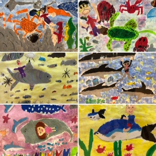 海遊館での魚たちとの出会いを、子どもたちが自分らしく表現しています!