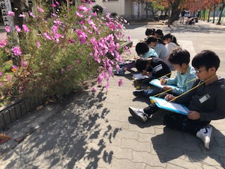 花一つからも秋の深まりを感じますね!とても楽しそうに鉛筆を走らせる子どもたちでした。