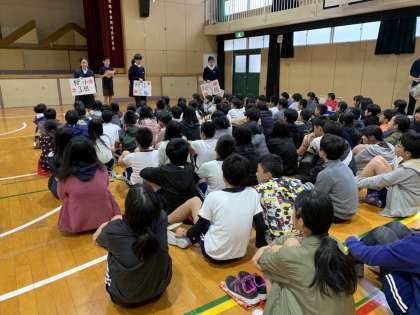 子どもたちは、午後から北中で部活動体験に行きました!まずは、部活動紹介です!中学生のみなさんが丁寧に、熱心に、伝えてくれました。子どもたちも真剣なまなざしです!