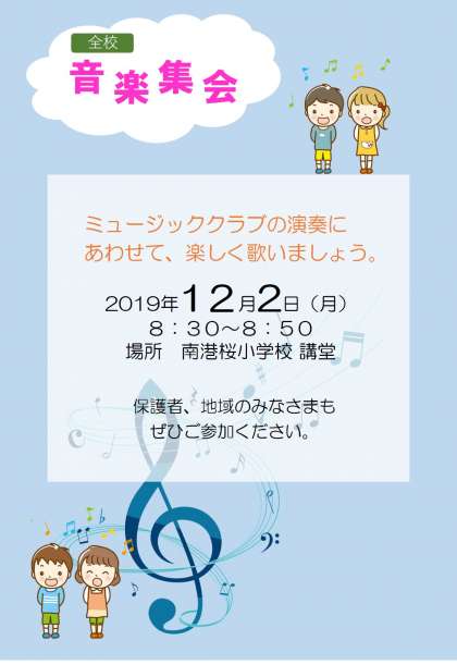 ぜひ、保護者や地域のみなさまも、一週間のスタートを元気いっぱいの音楽を感じて始めませんか?みなさんのお越しをお待ちしています。