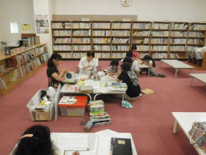夏休みも「さくらスマイル」の方々に来ていただいて、図書室開放を行っています。