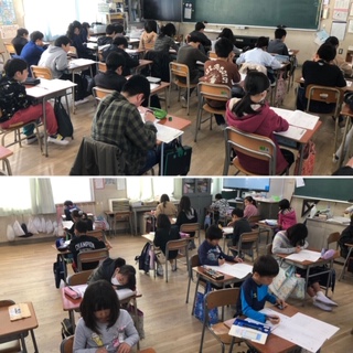 今日から二日間、3年生から6年生の子どもたちが算国社理のテストにチャレンジしています。今年度の学習内容の定着を図るために行われるこのテスト!