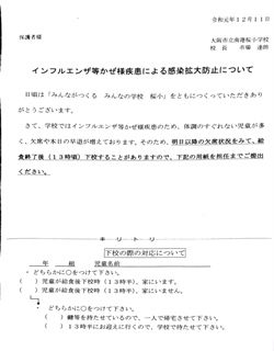 上記のお手紙を欠席者の多い学級には持ち帰らせています。