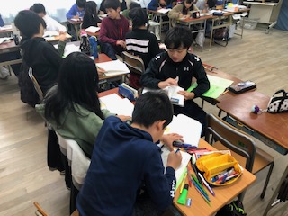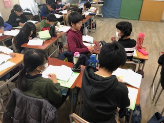 子どもたちは「町の幸福論」の単元で、資料の効果や良さについて考えました!グループや隣の人と話し合いながら、自分の考えを深めていきます!