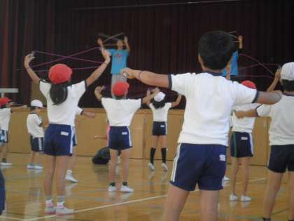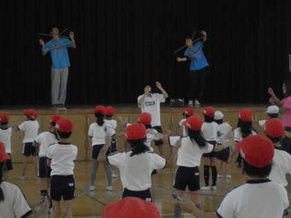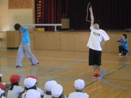 10月30日(木)に「がんばる先生支援事業」を活用して京都大学MTTRの皆さんになわとび出前授業をしていただきました。MTTRの皆さんは音楽に合わせてなわとびのパフォーマンスをしていただきました。子どもたちは「すごい!!四重跳び!!」などとかっこいいパフォーマンスに感嘆の声をあげていました。