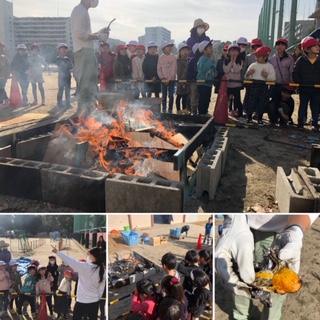 日差しが心地よい冬晴れの運動場では、お知らせしていた通り、「やきいも大会」が行われました!