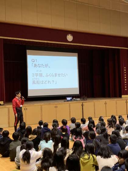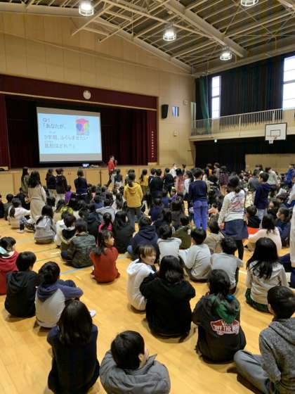 最初に「あなたが今学期に膨らませたい3つの風船はどれ?」と子どもたちは自分を見つめました。そして、「その風船にした理由?」を考えました。さらに、「なぜ、勉強するのか?」と問いかけ、「学びの意味」を考えさせました。この問いに答えありません!どんなことでも間違いはありません!だからいいんです!大事なことは自分の考えを持つことです!子どもたちは教室に帰ってからその理由を書き留めました。どんな子どもの考えが出たのかは、後日お知らせします。