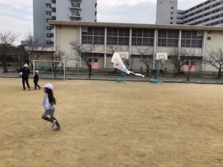 右に左に運動場を駆け巡り、少しでも上がると大喜びな子どもたち。