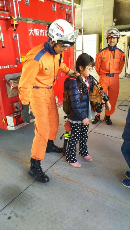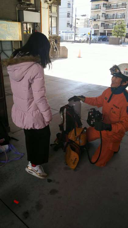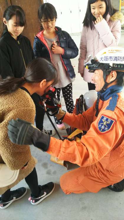 次はマスク体験です!実際に口に当てて体験します!子どもたちはドキドキ!ワクワクです。